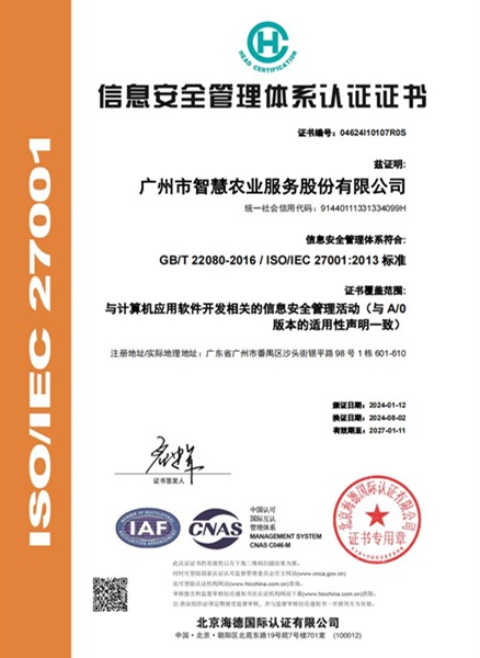 广州市智慧农业服务股份有限公司广州市智慧农业服务股份有限公司成立于2015年,是一家提供从农田到餐桌全产业链数字化解决方案的高新技术企业。围绕农产品的产前、产中、产后,结合5G、IoT、云计算以及人工智能等科技,领航旗下广州赛通科技有限公司、广州智慧真甜科技有限公司、广州米果智能设备有限公司、广州晨诺农业科技有限公司等子公司,提供智慧基地、智慧流通、智慧食堂数字化解决方案及价格行情、供应链金融、综合农科等服务。 |