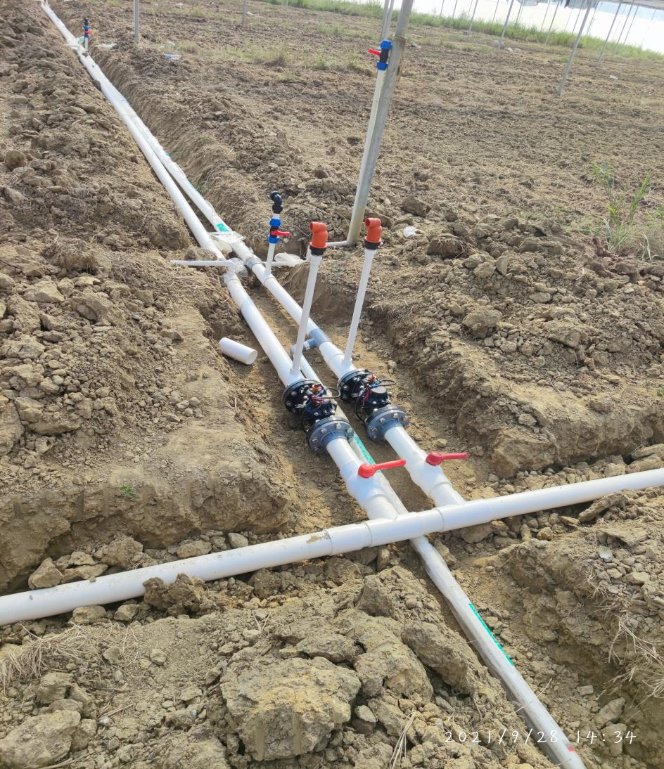 实施历程:20218月起,从第一台设备进场历时两个多月,完成水肥一体化的泵房首部安装和田间的无线灌溉测试