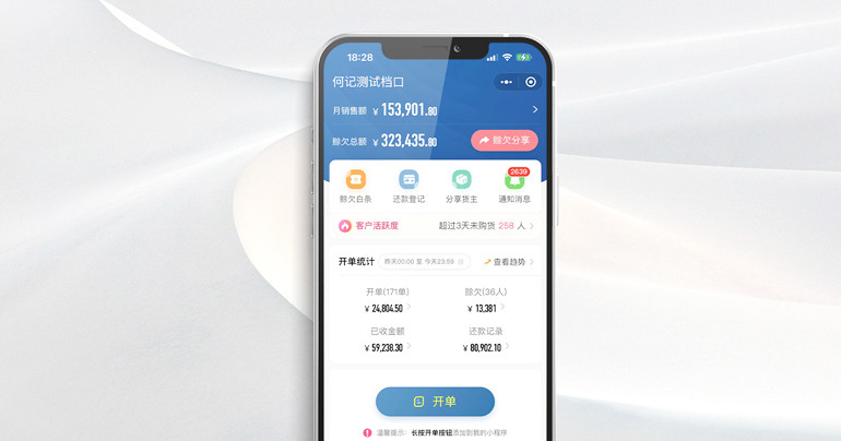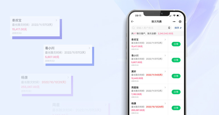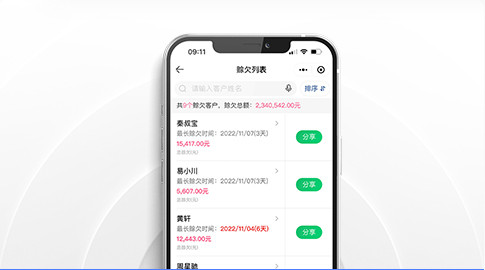 赊欠管理赊欠明细、汇总清晰明了,一键赊欠分享,轻松催收,欠款销账,自动计算,不遗漏一个欠款。 |