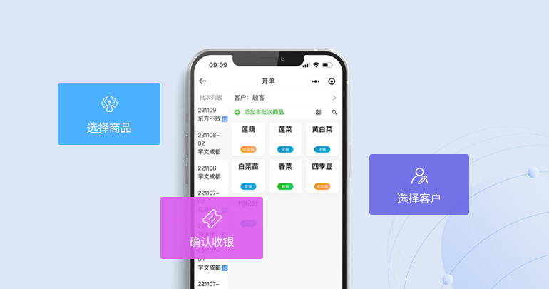 快速开单选择客户,选择商品,确认收银,三个步骤快速完成开单; 收银台可设置"优惠"、"多收"以及"取整",还可以同步打印销售单。 |