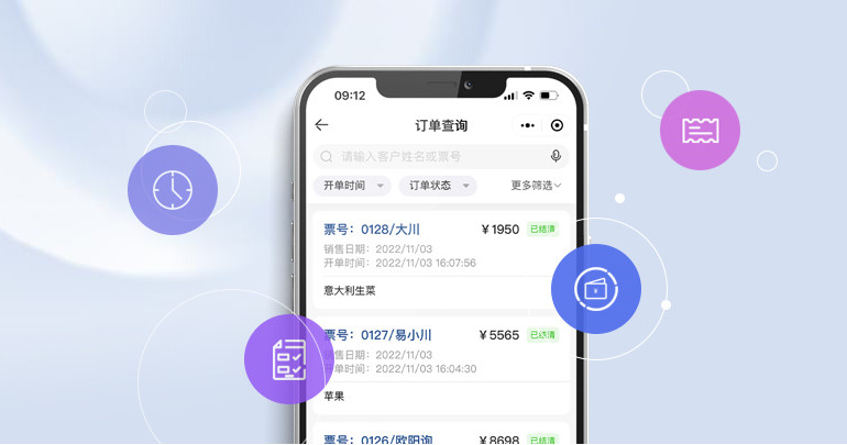 订单管理通过开单时间、订单状态、支付方式、优惠方式四个条件,查询订单,订单详情清晰展示,便捷管理。 |