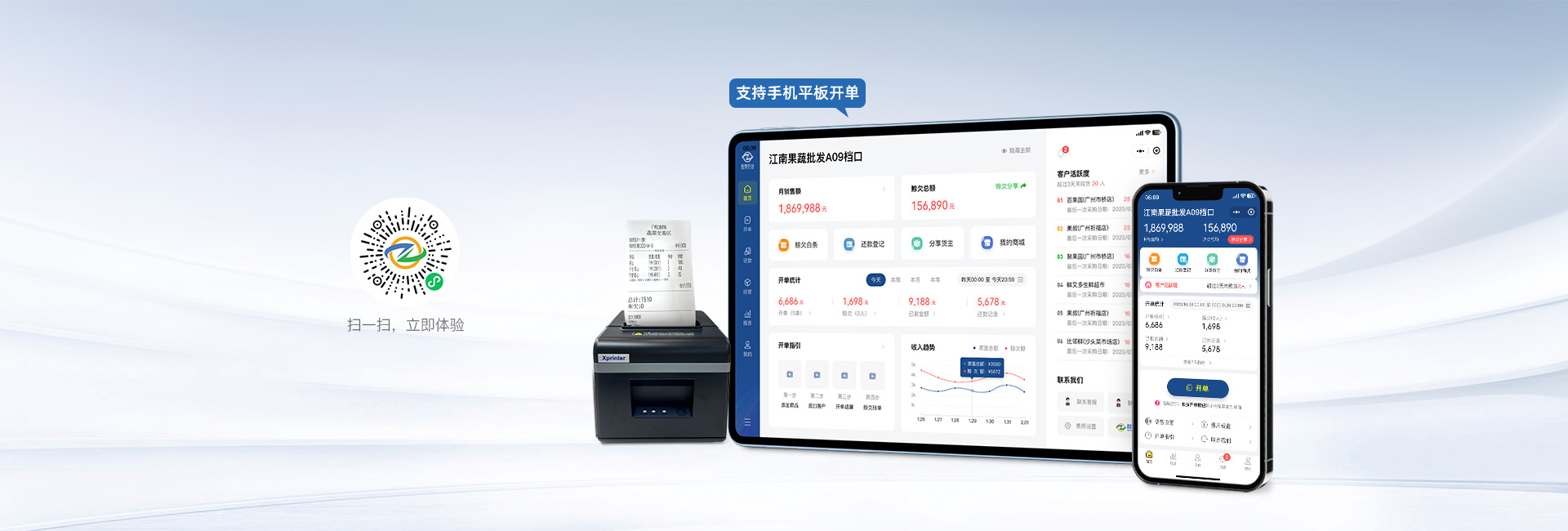 精准结算实时开单统计,开单数据、赊欠明细、已收款明细、赊欠还款明细、额外费用结算,经营数据详细精准,一目了然。 |