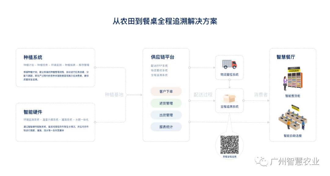 智慧农业成立于2015年,致力于成为中国最具影响力的智慧农业服务平台,为中国农产品种植、养殖、流通和食品安全作出贡献。智慧农业在农业产业链上游为基地提供智能化解决方案,包括GAP管理系统、溯源系统及物联网硬件设备和自动控制系统等;为食品流通企业提供一站式解决方案供应链管理系统;为餐饮企业和团体食堂提供智慧食堂管理系统及智能餐线设备,真正实现食材从农田到餐桌的全程管理。