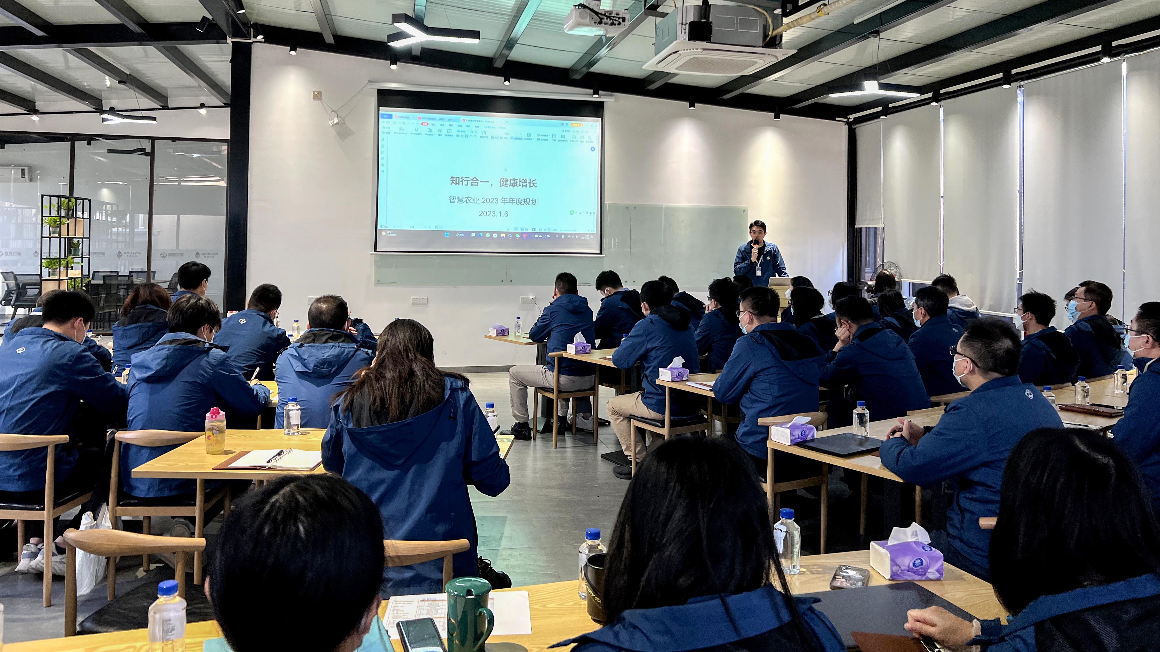 2023年1月6日-7日,广州市智慧农业服务股份有限公司2023年度经营规划大会于公司总部召开,此次会议以“知行合一,健康增长”为主题,聚集赛通科技、米果智能、智慧真甜、晨诺科技以及智慧牧渔等智慧农业旗下子公司负责人、各部门负责人及核心员工,共同针对公司2022年度经营发展进行总结以及对2023年度发展规划进行部署。