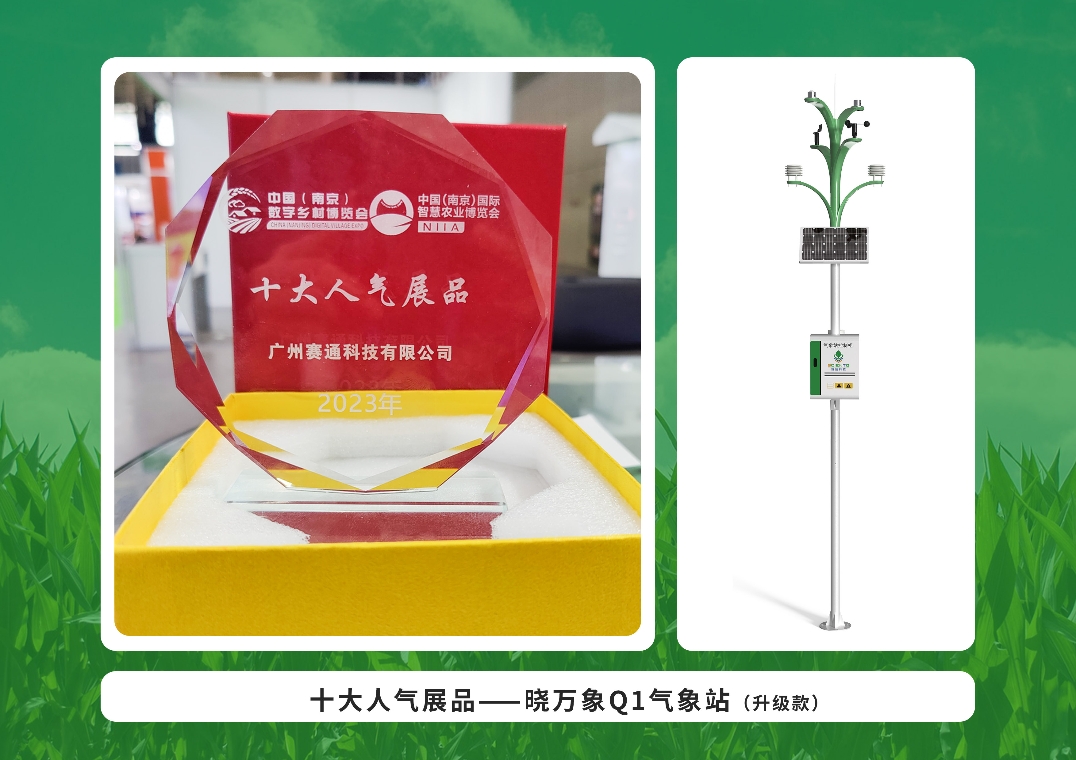 本次博览会的“十大人气展品打卡活动”中,荣获第三名的赛通科技新品“晓万象Q1气象站”跳出传统自动气象站的外观模式,采用叶子形状赋予“一叶知秋”的气象监测寓意,以亮眼的造型和优越的性能引起众多参展客户的围观了解。