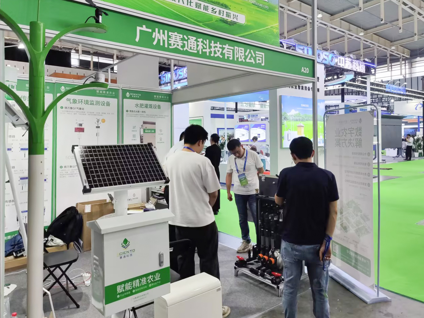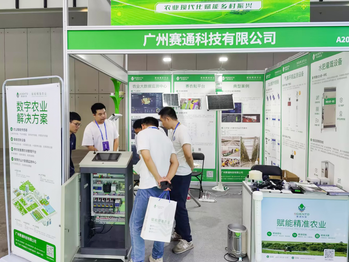 本次展会上,广州赛通科技有限公司携自主研发的农业智能传感器和晓万象系列气象站、智能水肥一体机、4G灌溉/采集控制器、土壤墒情监测站等智能控制监测设备以及赛农耘智慧农场管理平台、大数据监测中心等系统亮相,现场吸引众多专家学者和友商同行的垂询交流,共同探讨智慧农业领域的无限可能。