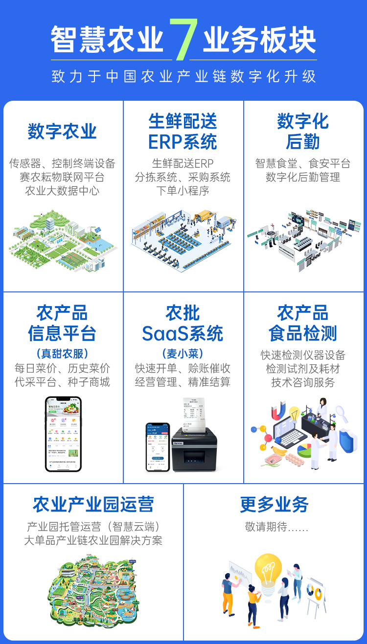 未来,广州市智慧农业服务股份有限公司将继续领航旗下广州赛通科技有限公司、广州米果智能设备有限公司、广州智慧真甜科技有限公司、广州晨诺农业科技有限公司、广东乐禾农业科技有限公司等子公司,坚持对数字农业、生鲜配送、智慧食堂解决方案及价格行情、农产品检测、现代农业产业园运营规划、供应链金融、综合农科等业务内容的开拓推广,提升农业发展的质量效益和市场活力,助力实现农业科技自立自强!
