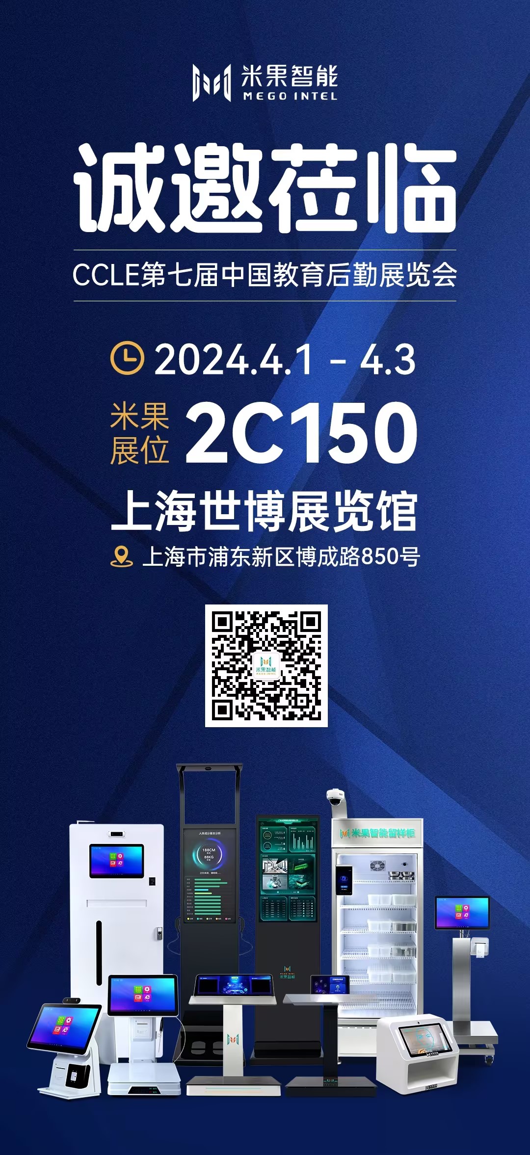 4月的上海,冬的气息刚刚褪去,春已随着海棠细雨来临,趁着最美人间四月天,CCLE教育后勤展4月1日开展咯!广州米果智能设备有限公司作为参展单位,诚邀各位伙伴莅临