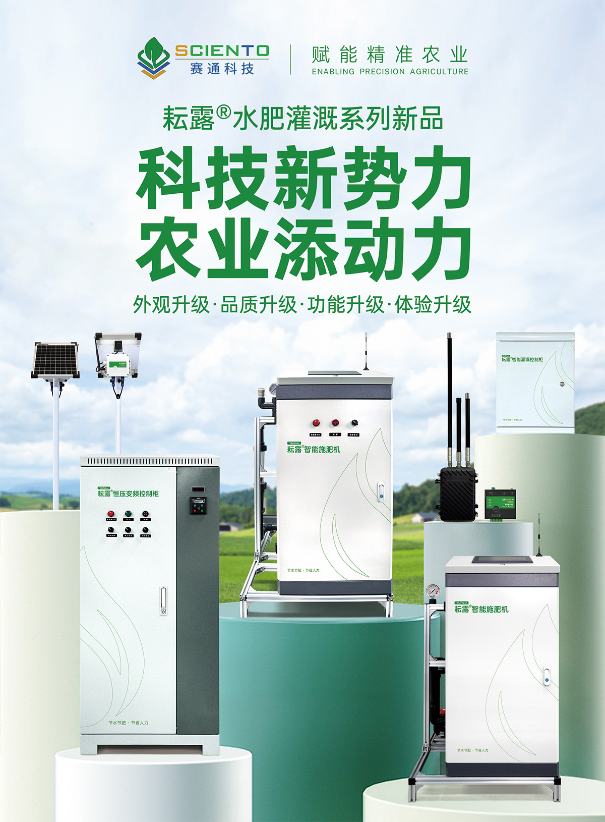 广州赛通科技有限公司基于成熟的数字农业研发经验和产品实践经历,以科技芯创新驱动水肥灌溉系列产品优化升级,自主研发大流量、强注肥能力、适用各种肥料的注入式智能施肥机;低功耗、长续航能力、通讯距离更远的LoRa无线采集灌溉控制器……