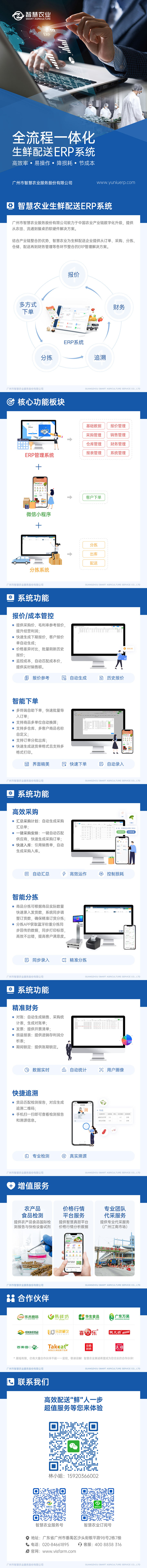 结合产业链整合的优势,智慧农业自主研发“更懂生鲜配送流程”的标准化数字服务,带来囊括报价、销售、采购、资料、仓库、分拣、财务、报表等管理功能的全流程一体化生鲜配送ERP系统。