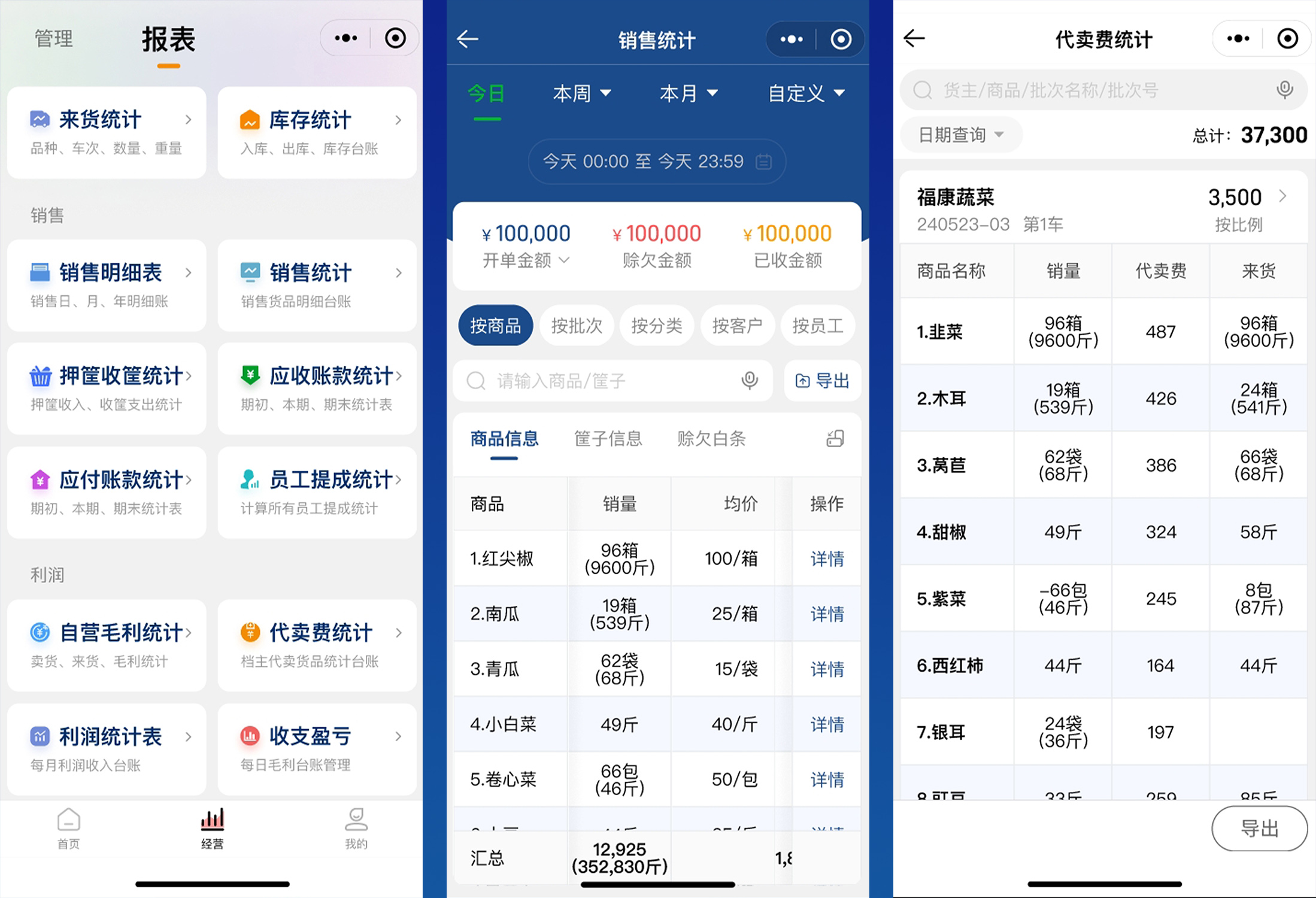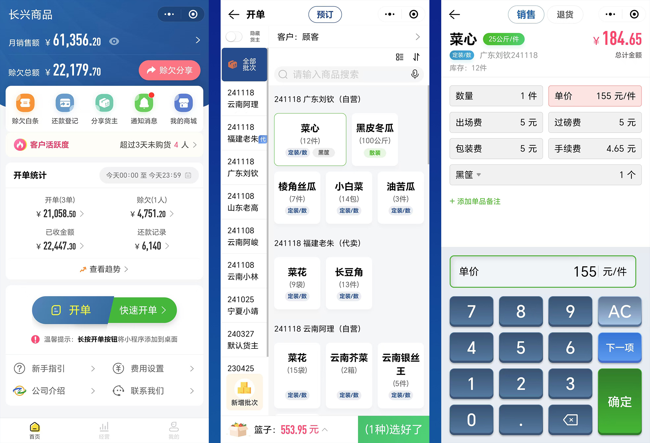 能够自动精准统计销售金额、赊欠、报损、优惠等数据,代替手工纸质记账,让档口经营数据更清晰、更有数,为经营者提供详细的经营分析依据,助力其做出更明智的决策。