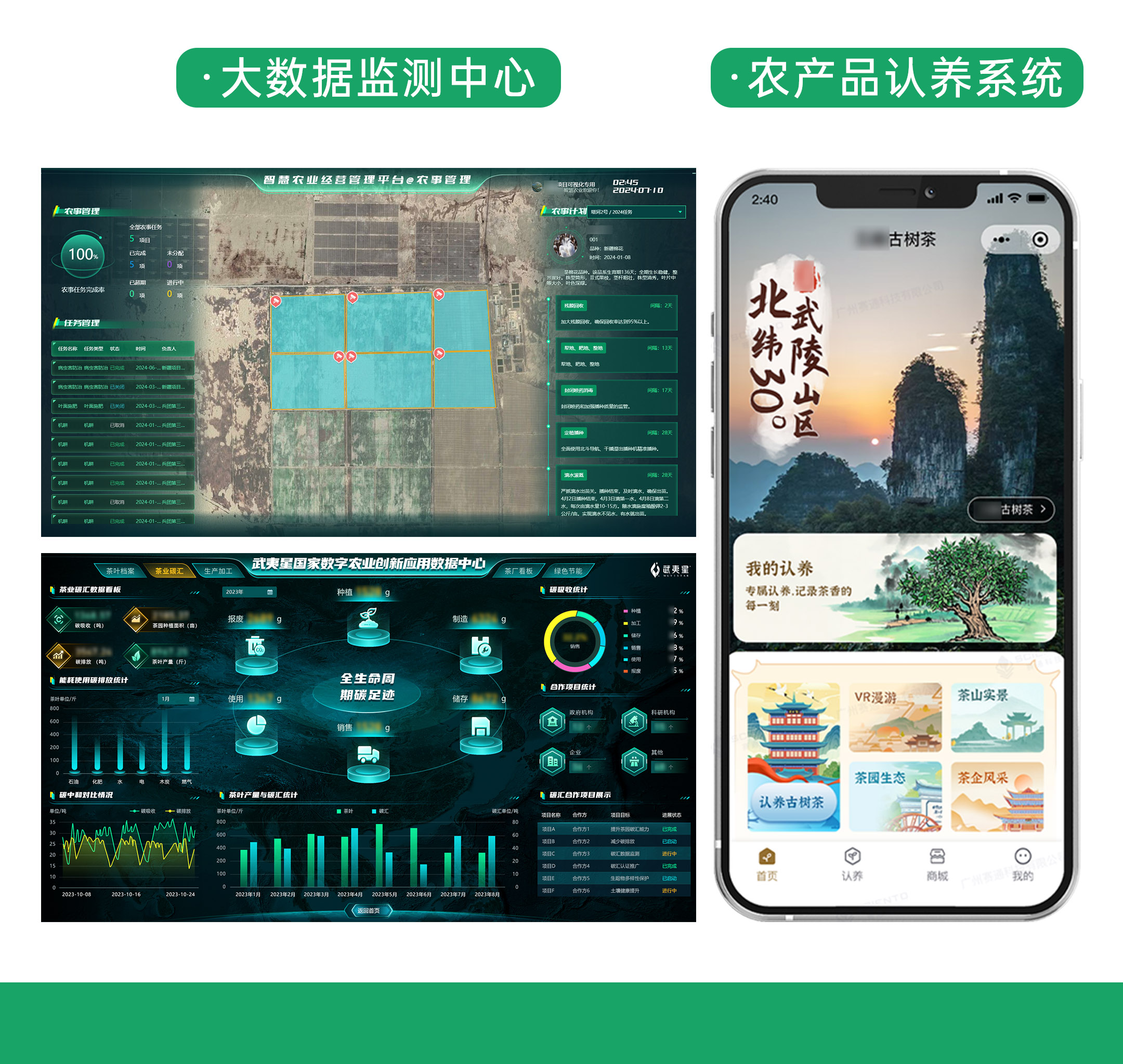 定制化农业解决方案:针对不同区域的农业特点,提供从种植到管理的全流程技术支持,打造粮食、棉花、荔枝、茶叶、菌菇、蔬菜等特色化场景解决方案,推动高标准农田建设与特色产业升级。