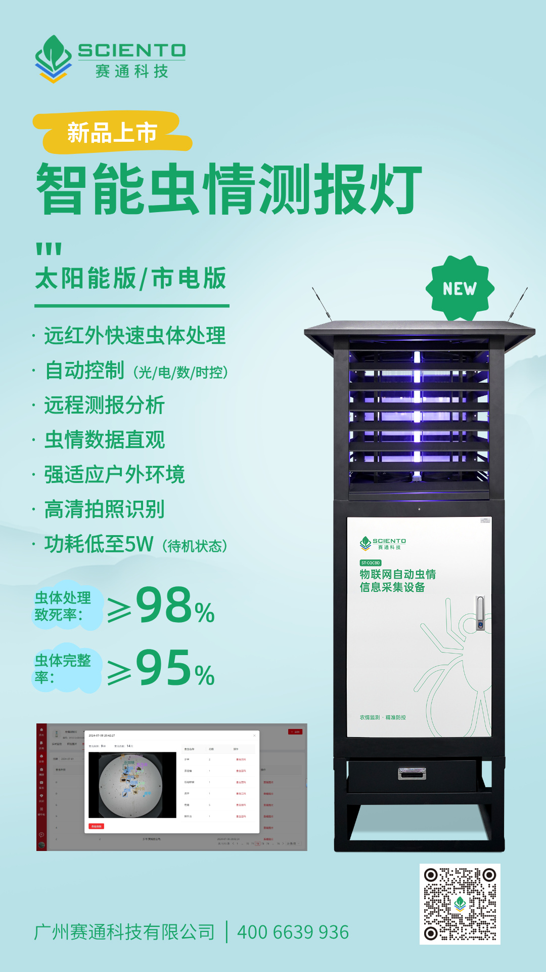 从人工估测到智能测报,从粗放防控到精准施策,赛通科技智能虫情测报灯,不仅能提升单区域虫害防控效率,更能通过精准数据积累构建全域虫情预警模型,助力产业减少盲目用药、降低防控成本,为农业与林业的可持续发展、高质量升级筑牢技术根基,成为守护产业生态与产量安全的重要支撑。